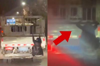 Polis terkejut nampak wanita ‘tergantung’ belakang lori bergerak, sanggup bahayakan diri intip suami curang