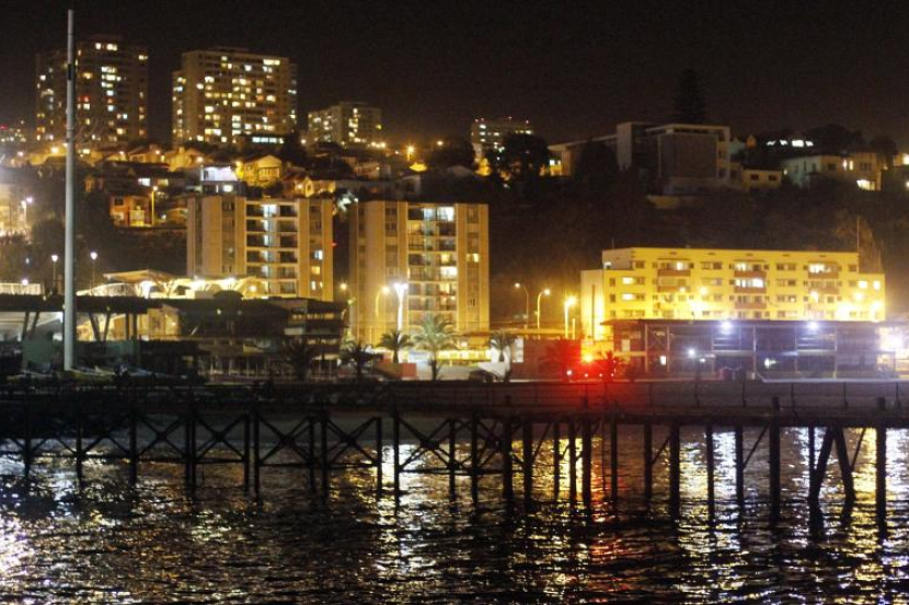 Dua lelaki menunggu kedatangan tsunami berikutan gempa bumi yang berlaku di utara Chile.