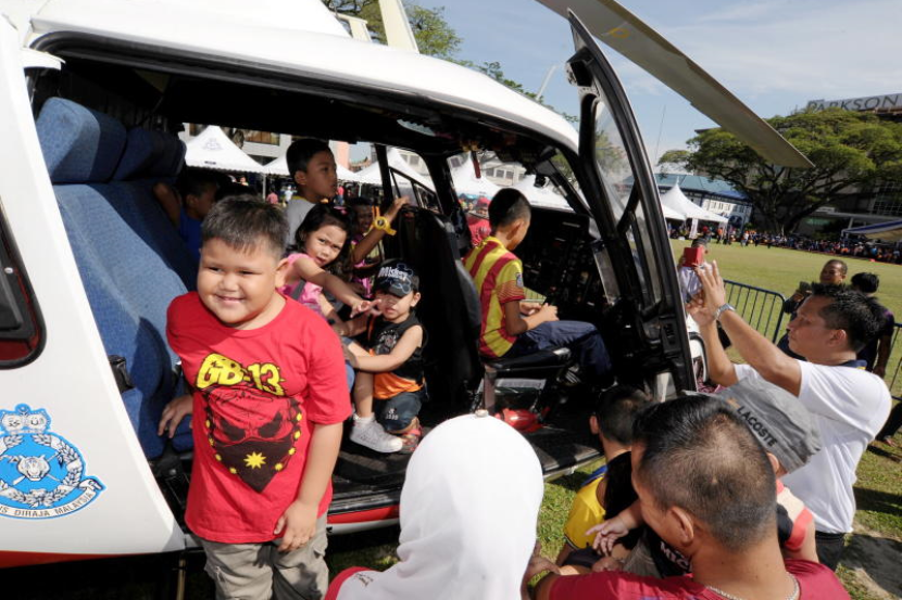 Sekumpulan kanak-kanak tidak melepaskan peluang untuk meninjau dari dekat Helikopter Polis pada Hari Terbuka Pasukan Gerakan Udara Polis Diraja Malaysia (PDRM) sempena Peringatan Hari Polis Ke-207 di Padang Merdeka, Kuching pada Ahad. - fotoBERNAMA