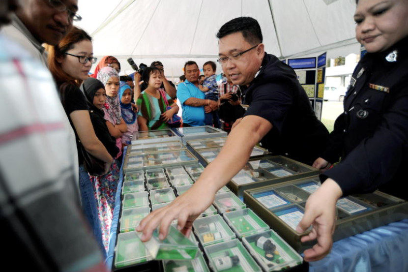 Insp Chudang Sangau dari Jabatan Narkotik Polis Diraja Malaysia (PDRM) menunjukkan pelbagai jenis dadah kepada pengunjung.- fotoBERNAMA