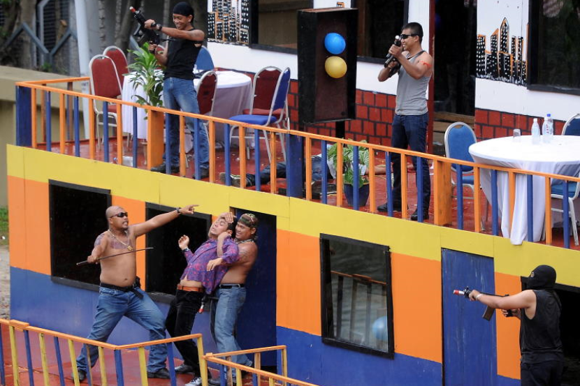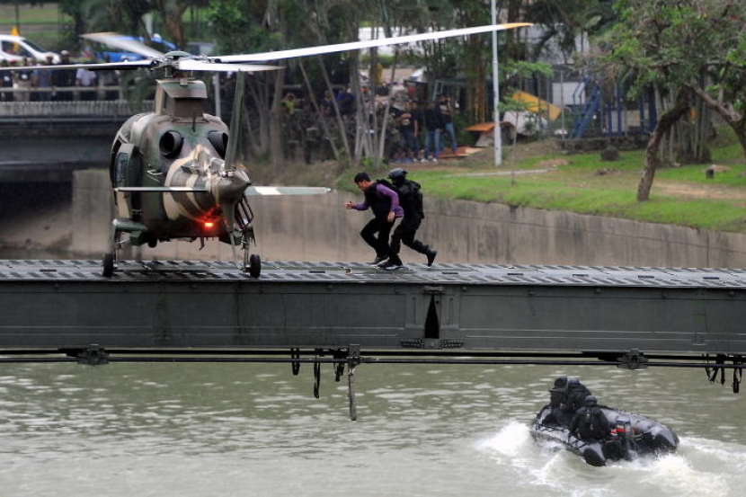 Komando Angkatan Tentera Malaysia (ATM) menyelamatkan tebusan ketika demonstrasi sempena Pameran Perkhidmatan Pertahanan Asia (DSA) kali Ke-14 di Pusat Dagangan Dunia putra (PWTC), Kuala Lumpur pada Isnin.