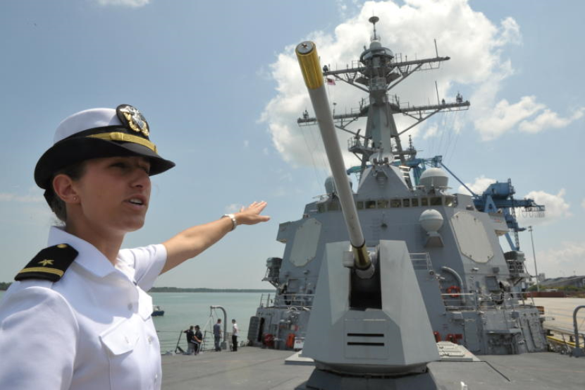 Seorang pegawai Tentera Laut Amerika memberikan penerangan kepada wakil media yang berpeluang membuat lawatan ke atas sebuah kapal Tentera Laut Amerika, USS KIDD. Foto BERNAMA