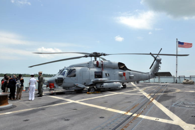 Sebuah helikopter maritim pelbagai fungsi yang digunakan oleh Tentera Laut Amerika Syarikat, Seahawk yang didatangi bersama sebuah kapal Tentera Laut Amerika, USS KIDD. Foto BERNAMA