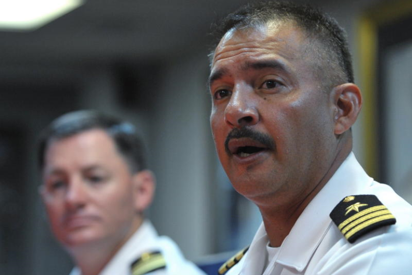 Pegawai Pemerintah Kapal Tentera Laut Amerika, USS KIDD (DDG 100) jenis Destroyer, CDR Gabe Varela ketika satu sidang akhbar ringkas di dalam kapal tentera tersebut di Pelabuhan Klang, Rabu. Foto BERNAMA