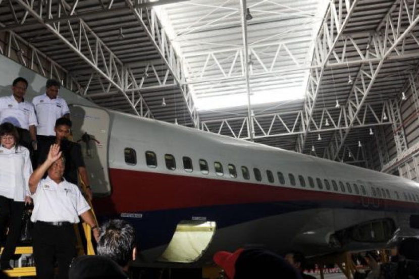 Timbalan Perdana Menteri, Tan Sri Muhyiddin Yassin meninjau dari dekat keadaan di dalam kapal terbang Boeing 737 - 400 semasa Majlis Penyerahan Pesawat terpakai kepada Kementerian Pendidikan oleh Malaysia Airlines di Politeknik Banting di Kuala Langat. Foto BERNAMA