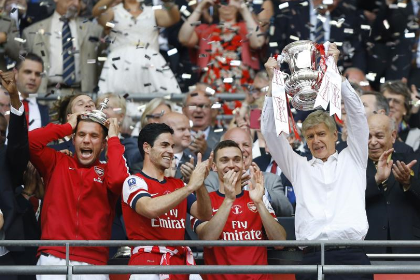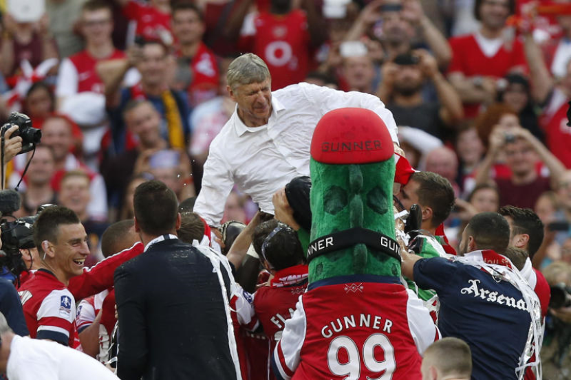 Arsene Wenger dijulang pemain-pemainnya selepas menang final Piala FA.