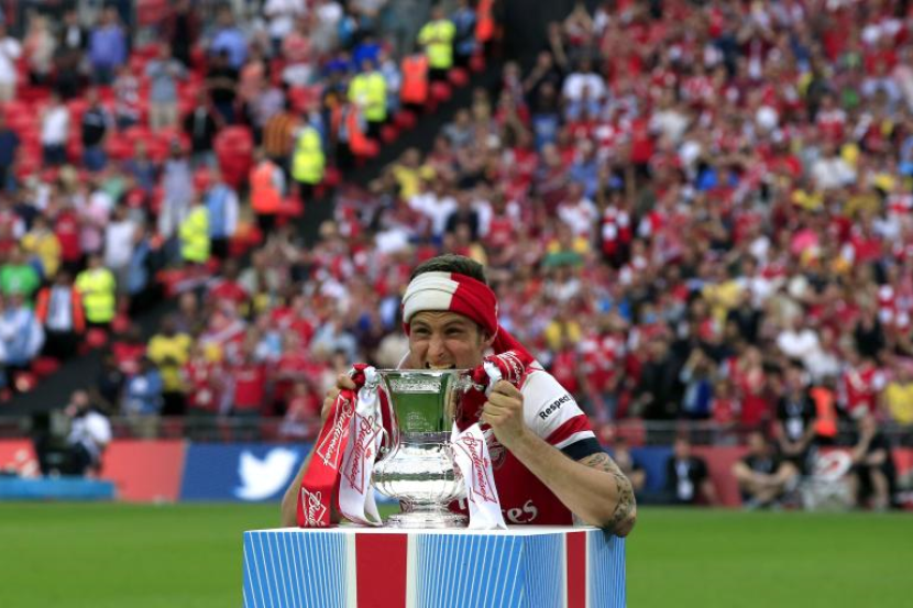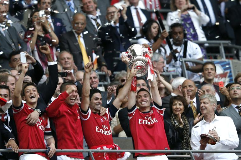 Pemain-pemain Arsenal meraikan kejayaan mereka.