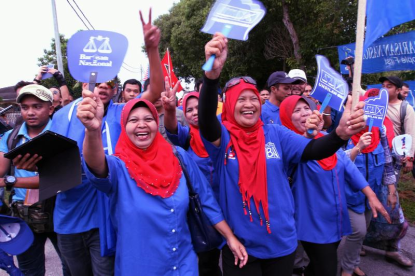 Penyokong BN bersemangat berkempen untuk parti itu ketika proses penamaan calon PRK Teluk Intan.