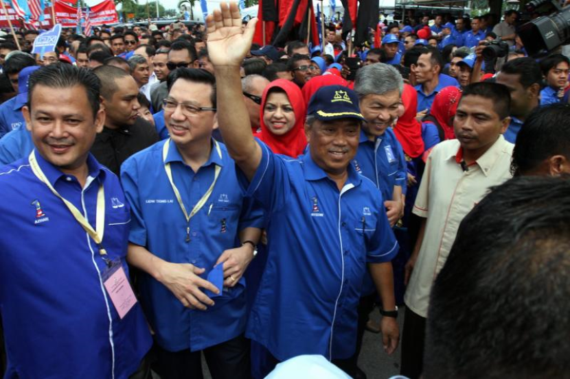 Tan Sri Muhyiddin Yassin mengetuai perarakan penyokong BN ke pusat penamaan calon PRK Teluk Intan.