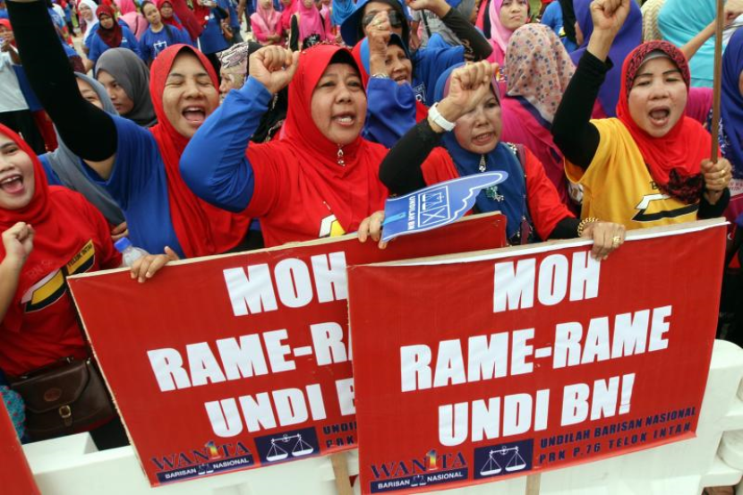 Antara penyokong BN semasa hari penamaan calon PRK Teluk Intan.