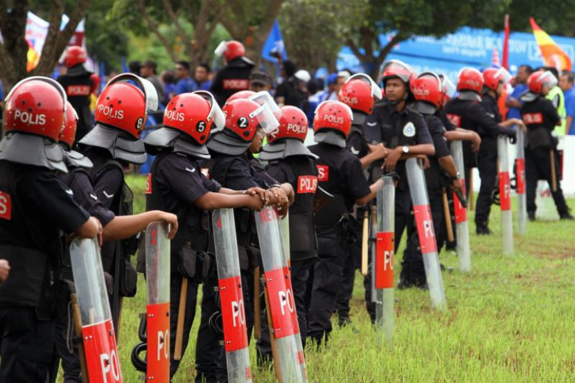 Pasukan FRU mengawal di sekitar pusat penamaan calon PRK Teluk Intan.