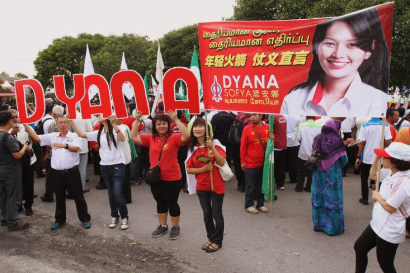 Calon DAP, Dyana Sofya Mohd Daud ditemani Lim Kit Siang dan Azmin Ali.