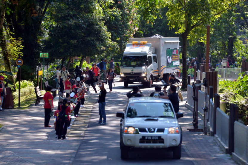 Kenderaan khas yang membawa Fu Wa (panda jantan) dan Feng Yi (panda betina) tiba di Zoo Negara di sini, hari ini.