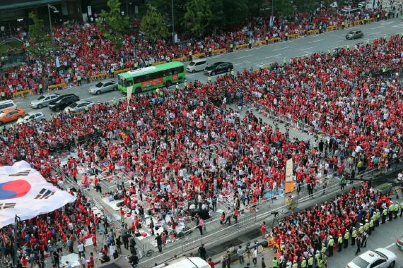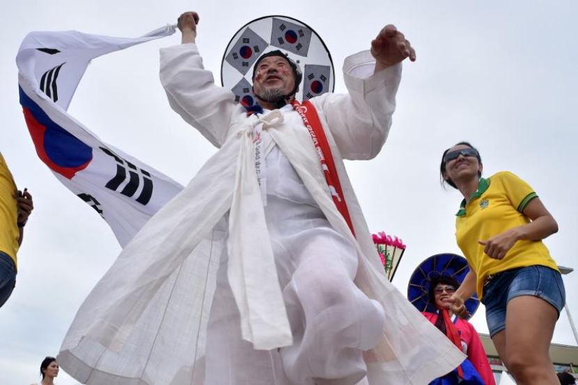 Psy membuat persembahan sebelum perlawanan Korea Selatan bertemu Rusia.