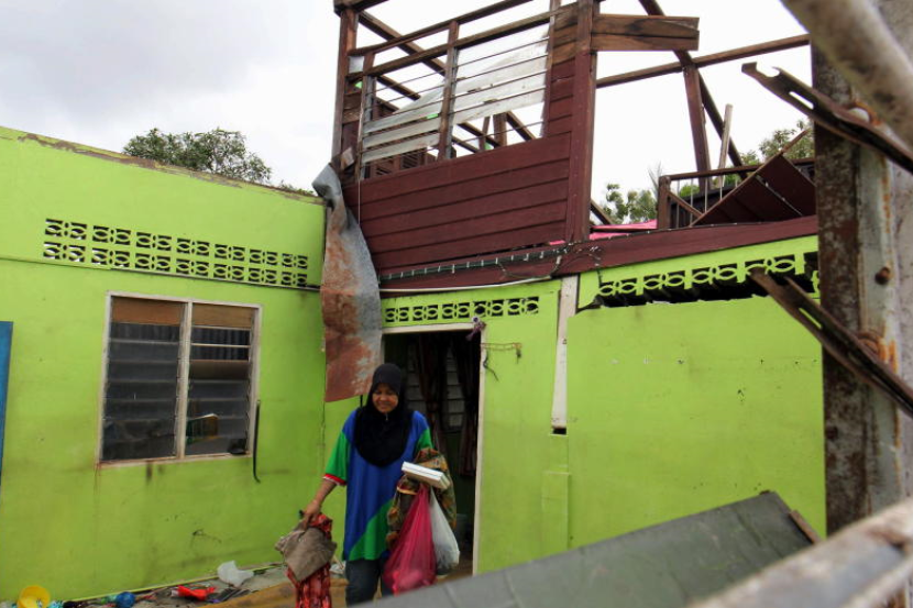 Mangsa kejadian puting beliung yang melanda Kampung Sungai Nonang di Kedah pada 12 November 2014 melihat keadaan rumahnya.
