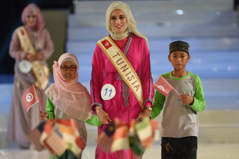 Peserta Tunisia, Fatma Ben Guefrache merangkul gelaran Ratu Muslimah 2014 dalam pertandingan ratu cantik yang berlangsung di Yogyakarta, Indonesia. Seramai 18 finalis dengan penampilan sopan turut diuji daripada segi bacaan Al-Quran dan pandangan berkaitan isu agama.