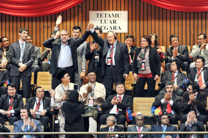 Pemerhati Luar Negara dari Palestin diberikan tepukan ketika diperkenalkan di Perhimpunan Agung Umno 2014 di Pusat Dagangan Dunia Putra (PWTC) pada Khamis.