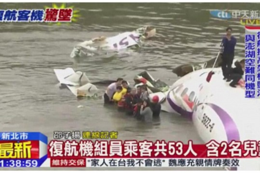 Sebuah pesawat penerbangan komersial Taiwan yang membawa 53 penumpang terhempas di Taipei pada pagi Rabu.