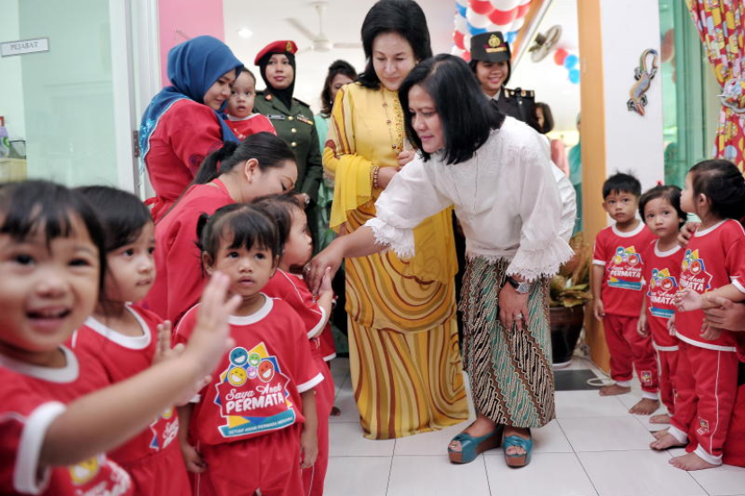 Isteri Perdana Menteri Datin Seri Rosmah Mansor bersama isteri Presiden Indonesia Joko Widodo, Iriana, beramah mesra bersama kanak-kanak Permata ketika membuat lawatan ke Pusat Anak Permata Negara.