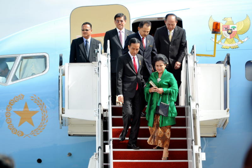 Presiden Indonesia , Joko Widodo bersama isteri Ibu Iriana Joko Widodo tiba disambut Perdana Menteri Datuk Seri Najib Tun Razak di perkarangan Kompleks Bunga Raya, Lapangan Terbang Antarabangsa Kuala Lumpur (KLIA).