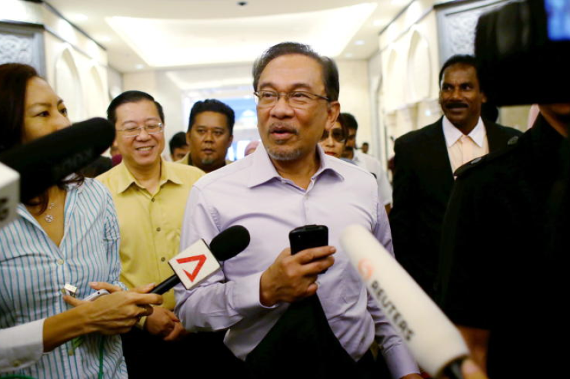 Datuk Seri Anwar Ibrahim ditemubual wartawan agensi berita antarabangsa sebelum memasuki Mahkamah Persekutuan di Putrajaya bagi mendengar keputusan kes liwatnya. Beliau didapati bersalah meliwat bekas pembantu peribadinya, Mohd Saiful Bukhari Azlan.