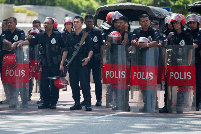 Anggota polis mengawal keadaan di Mahkamah Persekutuan Putrajaya pada hari pendengaran keputusan kes liwat Datuk Seri Anwar Ibrahim terhadap pembantu peribadinya, Mohd Saiful Bukhari Azlan.