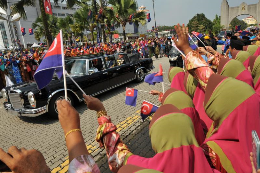 Rakyat Johor memenuhi sepanjang perjalanan kenderaan Sultan dan Permaisuri Johor selepas istiadat kemahkotaan selesai di Istana Besar.