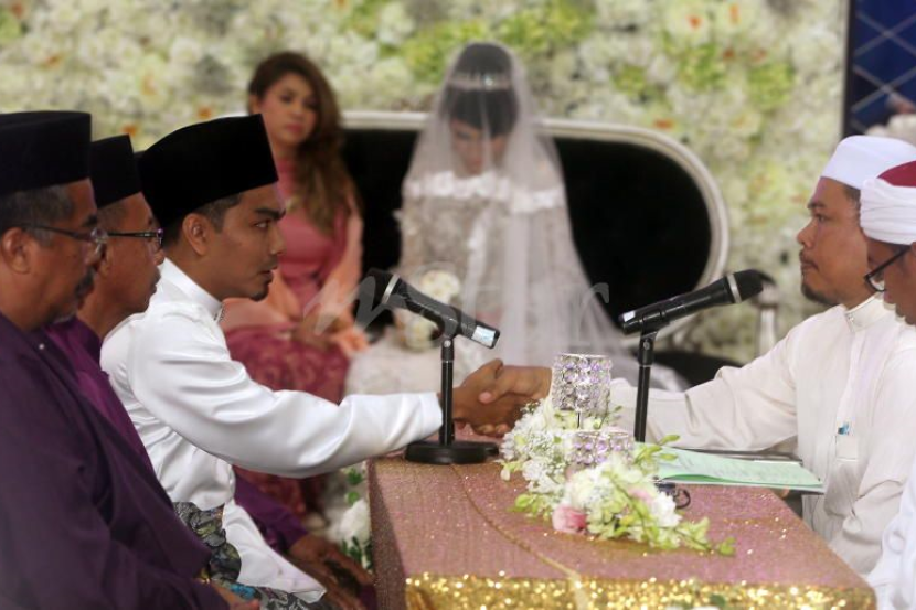 Mohd Huzairee Muhamad, 34, melafazkan akad nikah bagi memperisterikan Nor Iesyatirradiah Sanny Toh, 32, atau Iesya Toh. FOTO: KAMARUL ARIFFIN
