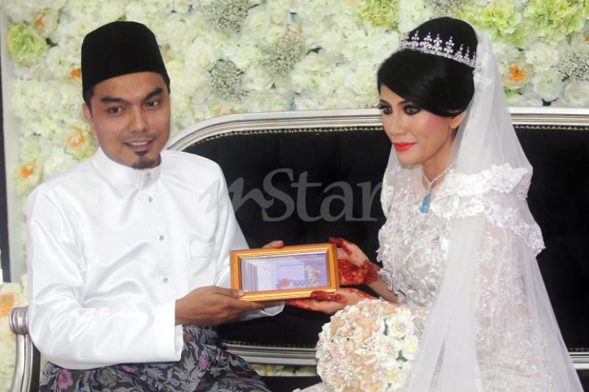 Pengacara Selamat Pagi Malaysia (SPM), Nor Iesyatirradiah Sanny Toh, 32, atau Iesya Toh menerima mas kahwin RM1,001 daripada suaminya, Mohd Huzairee Muhamad, 34. Pasangan itu sah diijabkabulkan dengan sekali lafaz pada majlis yang diadakan di Angkasapuri, Kuala Lumpur pada Jumaat (29 Mei 2015). FOTO: KAMARUL ARIFFIN