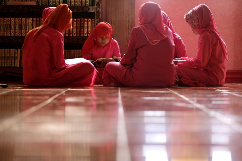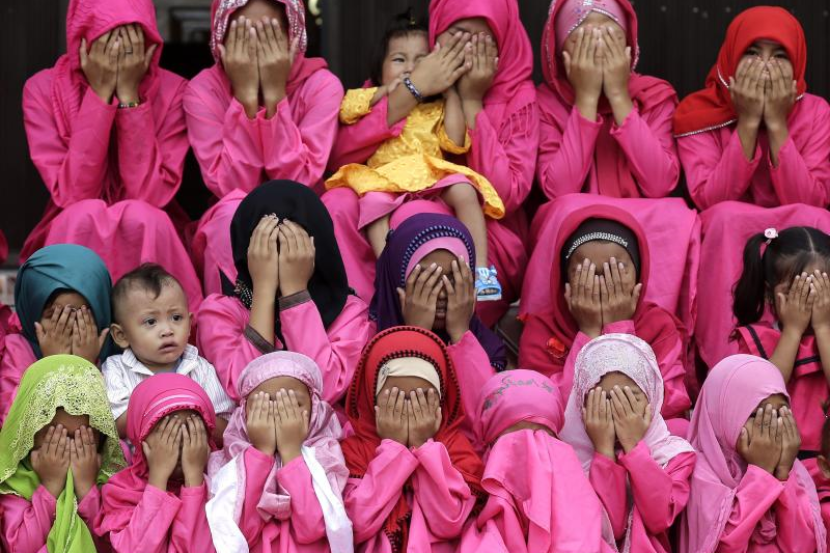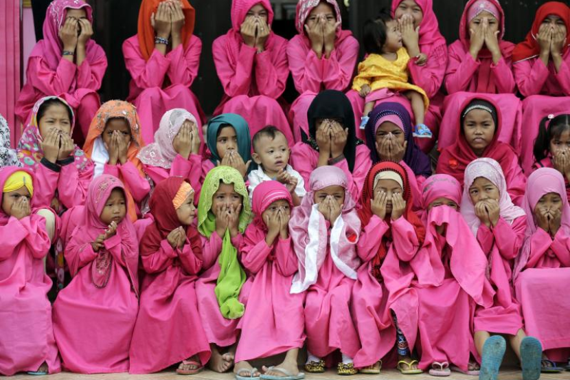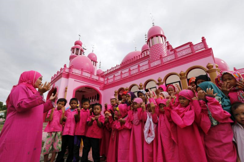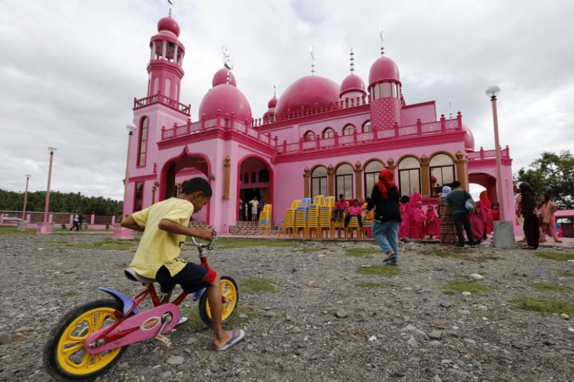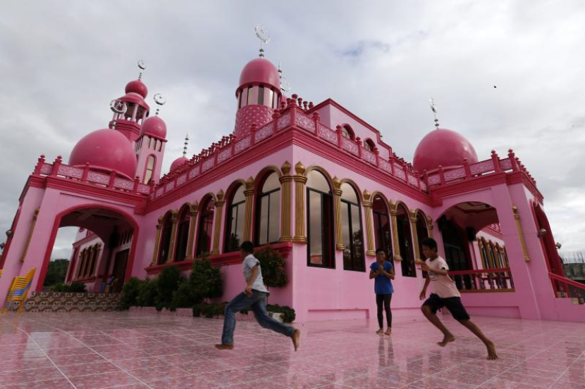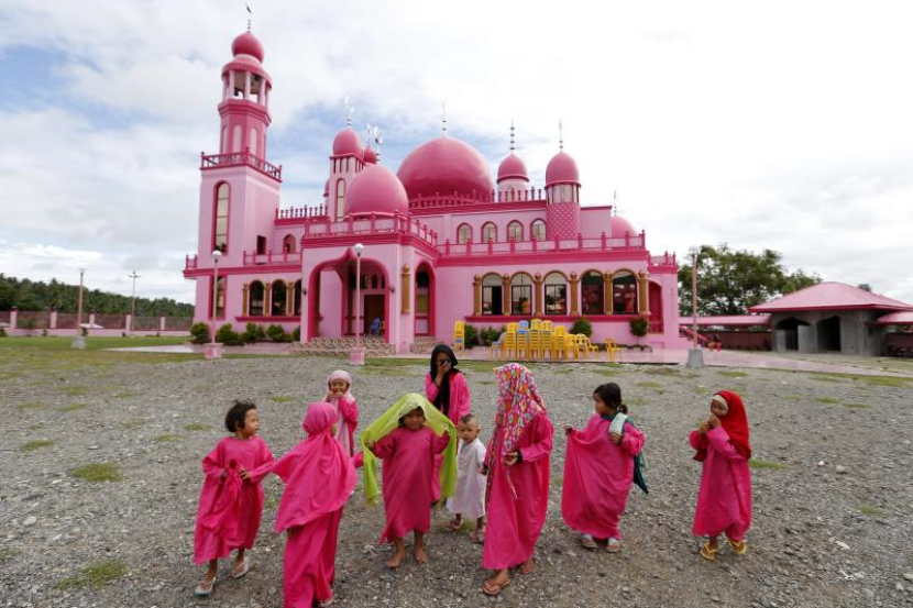 Kanak-kanak memeriahkan suasana Masjid Pink sempena sambutan hari pertama Ramadan di bandar Ampatuan, Maguindanao, Filipina.