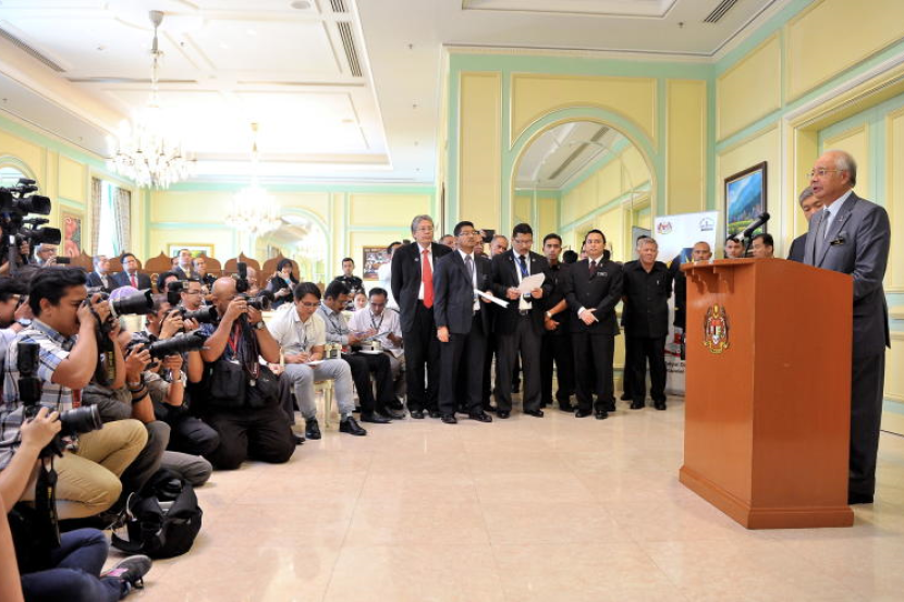Perdana Menteri Datuk Seri Najib Tun Razak (kanan) mengadakan sidang media bagi mengumumkan rombakan Kabinet di pejabatnya di Putrjaya, Selasa. Turut kelihatan Menteri Dalam Negeri Datuk Seri Ahmad Zahid Hamidi disebelahnya yang dilantik sebagai Timbalan Perdana Menteri baharu