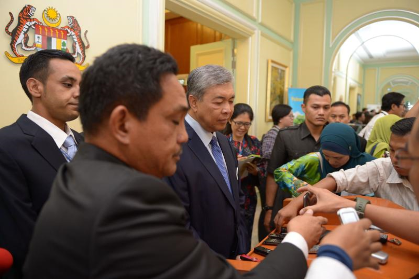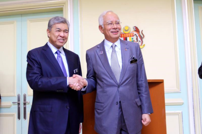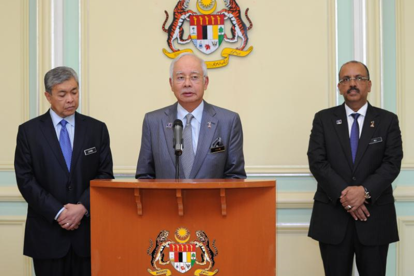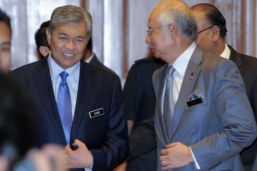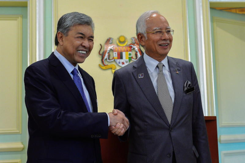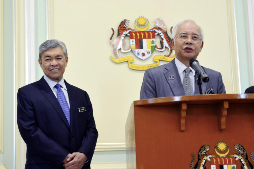 Perdana Menteri Datuk Seri Najib Tun Razak (kanan) mengadakan sidang media bagi mengumumkan rombakan Kabinet di pejabatnya di Putrjaya, Selasa. Turut kelihatan Menteri Dalam Negeri Datuk Seri Ahmad Zahid Hamidi (kiri) yang dilantik sebagai Timbalan Perdana Menteri baharu