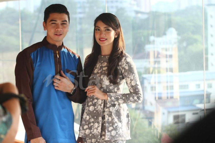 Pelakon Amar Baharin (kiri) dan Amyra Rosli yang menafikan hubungan cinta mereka turut hadir pada majlis rumah terbuka Aidilfitri anjuran Media Prima Berhad. Ia diadakan di Hotel Hilton, Kuala Lumpur pada 5 Ogos 2015. Foto: CHAN TAK KONG.