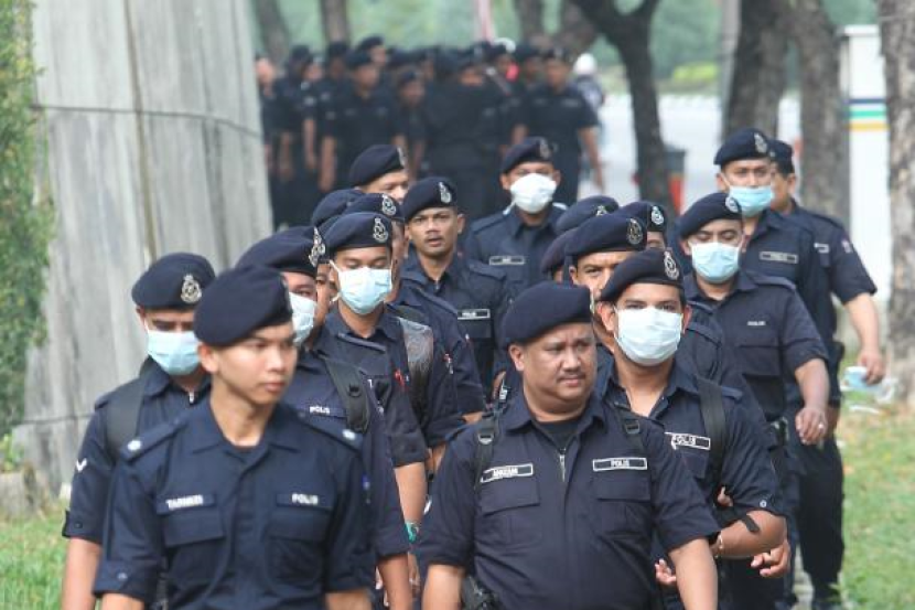Anggota polis melakukan pengawasan sepanjang perhimpunan Baju Merah di ibu negara.