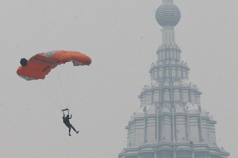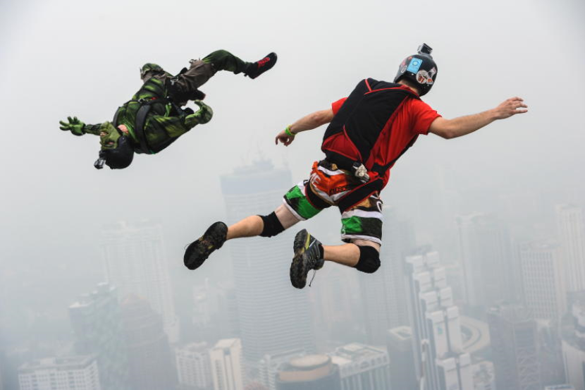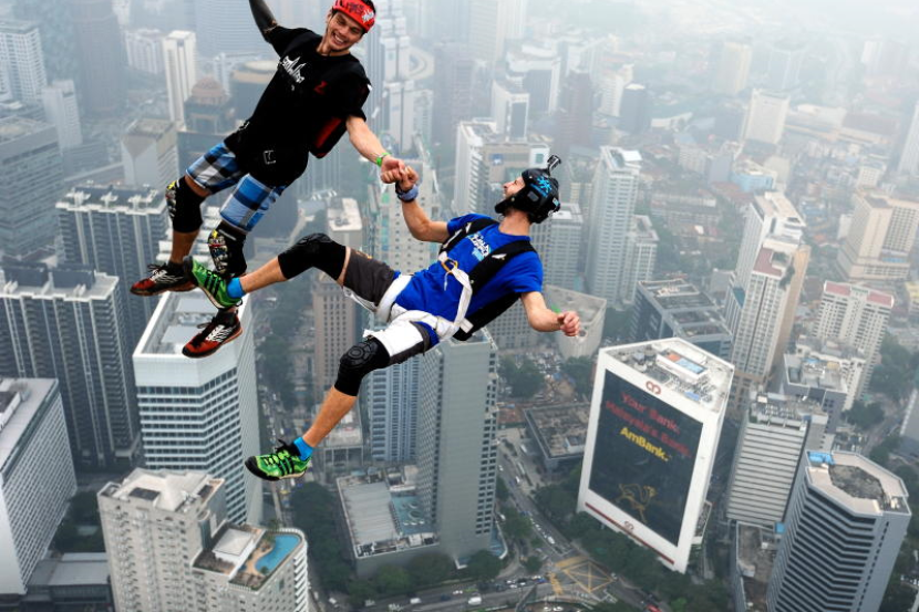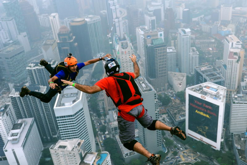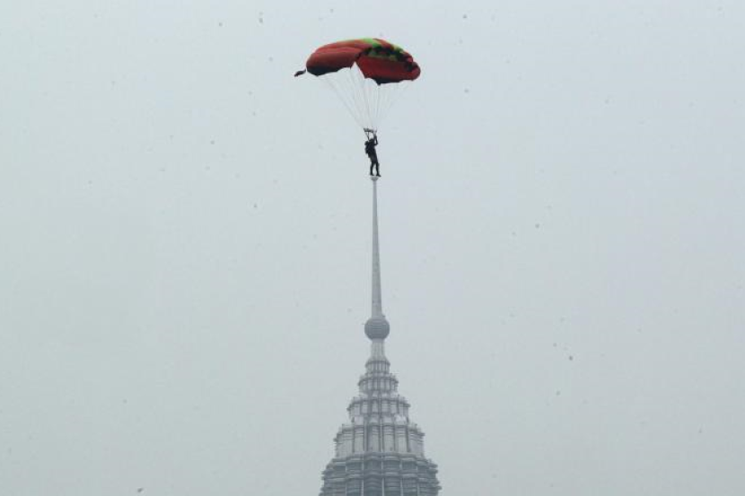 Peserta sukan lasak tahunan Terjunan Antarabangsa Menara Kuala Lumpur (KLTIJM) membuat terjunan dari TH07 (kepala Menara 7) pada ketinggian 312 meter dari paras bumi hari ini. Acara antarabangsa itu berlangsung selama tiga hari bermula Jumaat. Foto Bernama