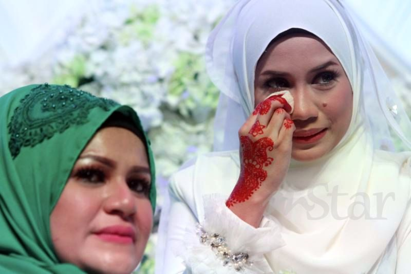 Mila Jirin ditemani ibunya kelihatan manis selepas bergelar suami kepada pengurus sendiri iaitu Ahmad Ailis Mohamed Mustapha atau Isz. Mereka selamat bernikah di Hotel E-City, One City, Subang Jaya, Selangor sempena tarikh 11.11.2015. FOTO: IZZRAFIQ ALIAS.