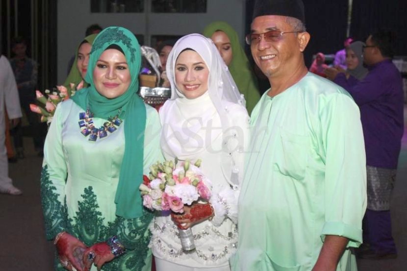 Mila Jirin diapit ibu dan bapanya pada majlis pernikahan dia dengan Ahmad Ailis Mohamed Mustapha atau Isz yang diadakan di Hotel E-City, One City, Subang Jaya, Selangor pada 11.11.2015. FOTO: IZZRAFIQ ALIAS.