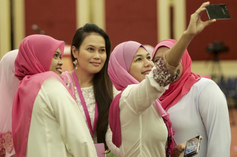 Sebahagian daripada perwakilan Wanita UMNO mengikuti perbahasan pada Perhimpunan Wanita UMNO yang berlangsung pada Rabu.
