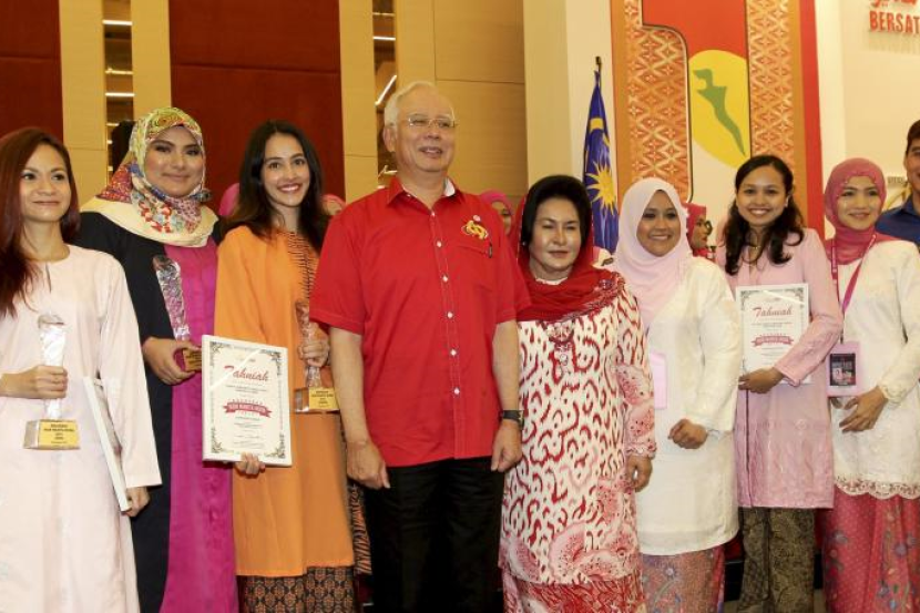 Presiden Umno, Datuk Seri Najib Tun Addul Razak dan isteri, Datin Seri Rosmah Mansor serta Ketua Puteri Umno Datuk Mas Ermieyati Samsudin [lima kanan] begambar bersama penerima-penerima Anugerah Ikon Wanita Muda di PWTC, Rabu.