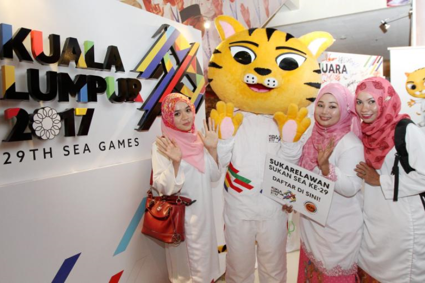 Dari kiri: Nurul Neyyah Mukhzani, 24, Akmal Mohamad, 34 and Juliani Yusof turut tidak melepaskan peluang mendaftar sebagai Sukarelawan Sukan Sea 2017 ketika berlangsung Perhimpunan Agung Umno di PWTC pada Rabu.