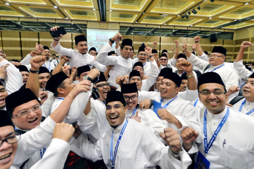 Ketua Pemuda UMNO Khairy Jamaluddin (tengah) dijulang oleh perwakilan Pemuda UMNO selepas beliau menyampaikan ucapan penggulungan pada Perhimpunan Agung Pergerakan Pemuda UMNO sempena Perhimpunan Agung UMNO ke-69 di PWTC pada Rabu.