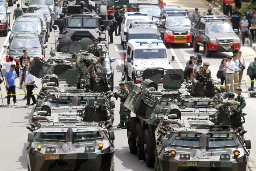 Pasukan Keselamatan Indonesia meningkatkan kawalan susulan kejadian letupan bom yang didalangi militan hingga mengorbankan enam nyawa, selain empat militan yang ditembak dalam kejadian berhampiran gedung Sarinah Mall, Jakarta, Khamis.