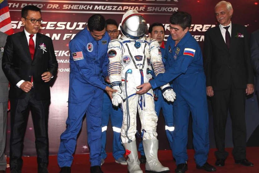 Angkasawan pertama Malaysia, Datuk Dr. Sheikh Muszaphar Shukor bersama pakaian SOKOL yang pernah dipakai beliau sepanjang perjalanannya yang bersejarah ke Soyuz TMA-11, sembilan tahun lepas.