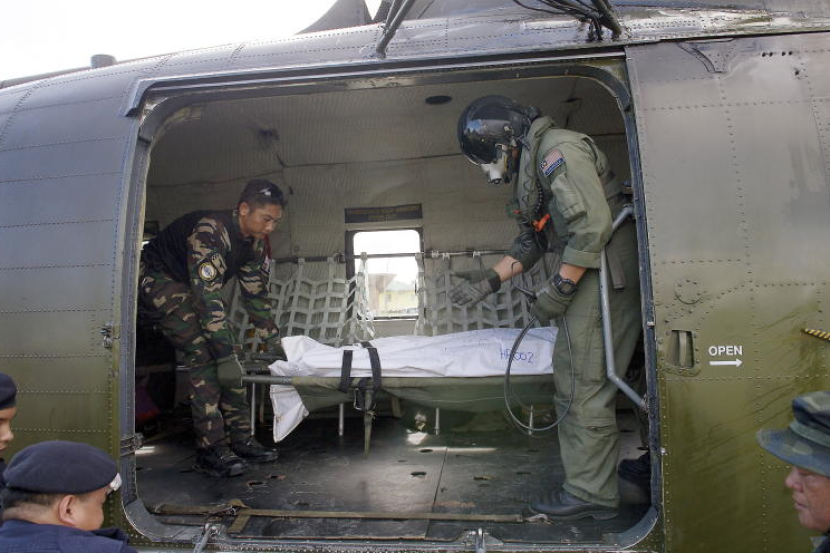 Mayat mangsa nahas helikopter dibawa ke hospital untuk bedah siasat.