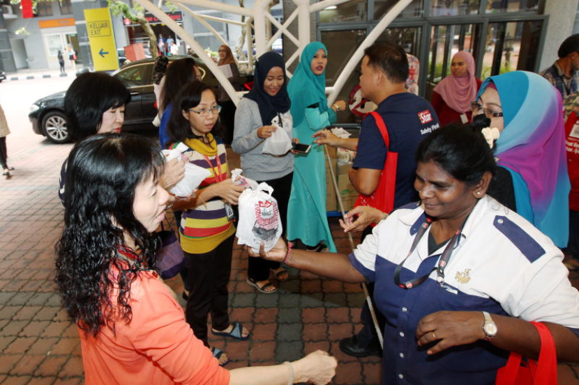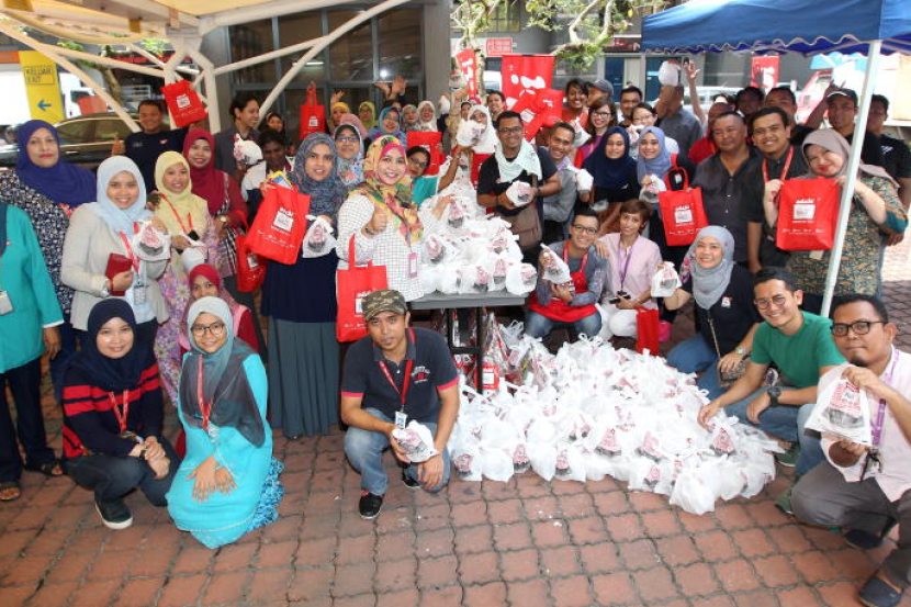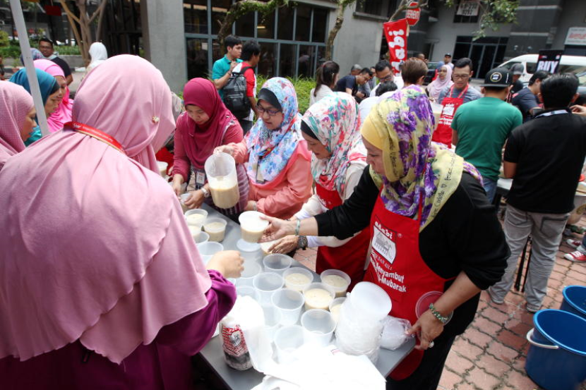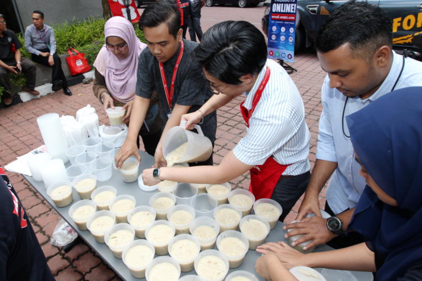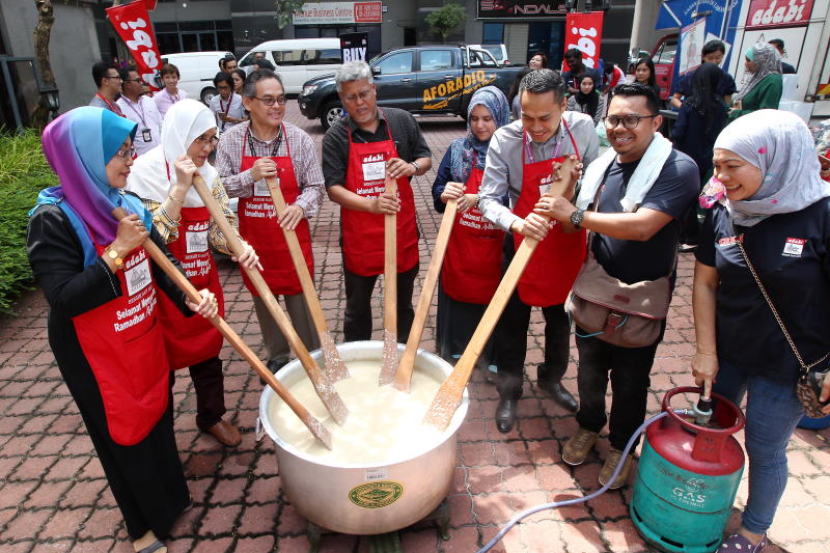 Kakitangan Star Media Group bergotong-royong menyediakan bubur lambuk mStar-Adabi yang diedarkan secara percuma di Menara Star, Petaling Jaya.