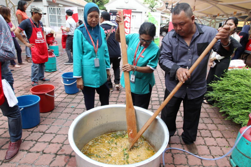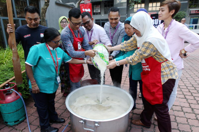 Kakitangan Star Media Group bergotong-royong menyediakan bubur lambuk mStar-Adabi di Menara Star, Petaling Jaya.