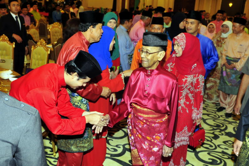 Yang di-Pertuan Agong Tuanku Abdul Halim Mu'adzam Shah dan Raja Permaisuri Agong Tuanku Hajah Haminah berkenan beramah mesra dengan tetamu kenamaan yang hadir pada Majlis Sambutan Hari Raya Aidilfitri Bersama Rakyat Jelata di Istana Negara, Rabu.