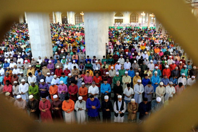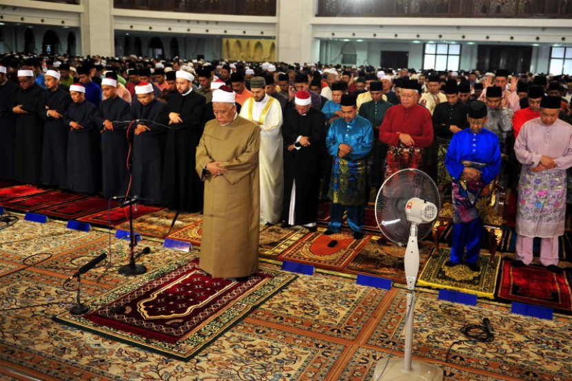 Yang di-Pertuan Agong Tuanku Abdul Halim Mu'adzam Shah (dua, kanan) berkenan menunaikan solat sunat Aidilfitri di Masjid Wilayah Kuala Lumpur, Rabu. Turut hadir Perdana Menteri Datuk Seri Najib Tun Razak (tiga,kanan) dan Timbalannya Datuk Seri Dr Ahmad Zahid Hamidi (kanan)
