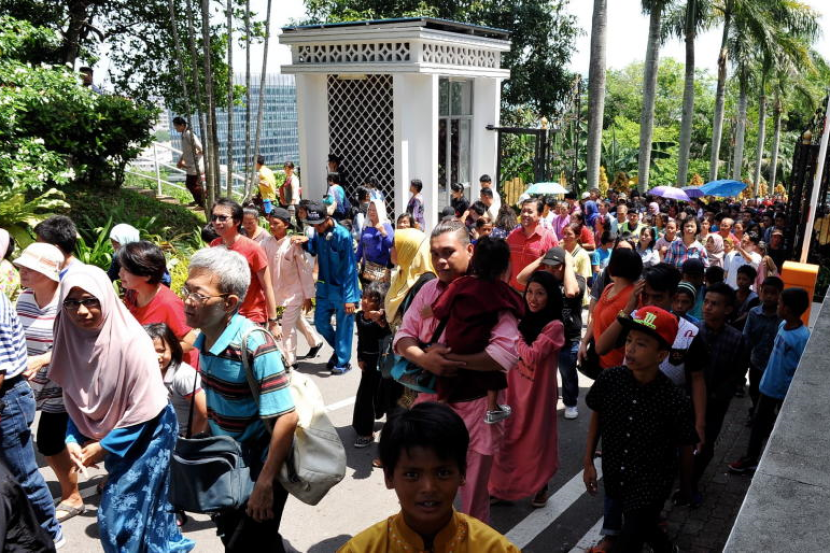 Orang ramai memenuhi laluan pintu gerbang Istana Negeri Sabah bagi menghadiri Rumah Terbuka Hari Raya Yang di-Pertua Negeri Sabah Tun Juhar Mahiruddin hari ini.