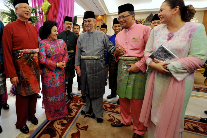 Perdana Menteri Datuk Seri Najib Tun Razak dan isteri Datin Seri Rosmah Mansor ketika beramah mesra bersama bekas Perdana Menteri Tun Abdullah Ahmad Badawi pada Majlis Rumah Terbuka Hari Raya Aidilfitri Perdana Menteri dan anggota kabinet di Kompleks Seri Perdana, Rabu.